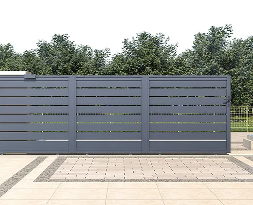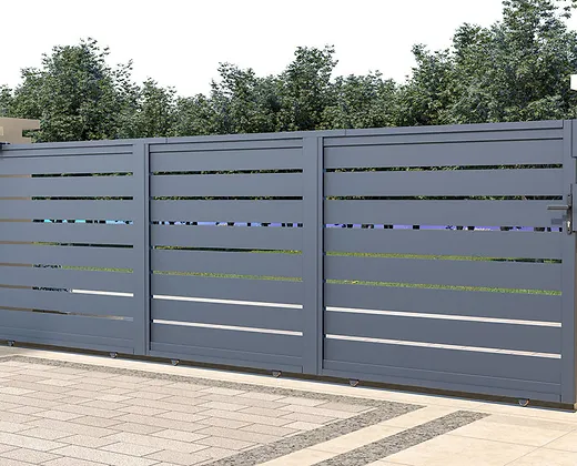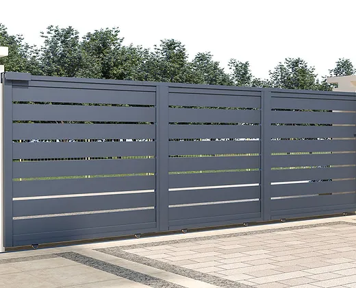 The Rojales sliding gate is a great option for those looking for a simple and modern design that provides total concealment for enhanced privacy. It is made of aluminum and comes in a choice of colour finishes.